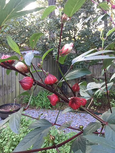 After flowers have finished blooming, harvest the deep-red, teardrop-shaped, calyxes at the base of each blossom. Snap off calyxes that are ready, removing spent flower if still attached Use fresh, or air-dry for longer storage.