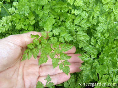 Chervil needs rich moist soil and ample moisture for lush growth. Thin early and keep well weeded and watered. Begin to harvest leaves sparingly once plants have 8 to 10 leaves. Fertilize every 2 to 3 weeks with a high nitrogen source or liquid fish emulsion solution. Because chervil goes to seed quickly in hot weather, the best way to have a good supply is to make successive sowings until the weather gets too hot, then plant again as summer begins to cool for fall harvest. Enjoy fresh as chervil does not hold its flavor when dried. Use the leafy sprigs in salads or add to hot dishes at the end of cooking to preserve chervil’s delicate flavor.Regular price $3.39Sale price $3.39Unit price / per -