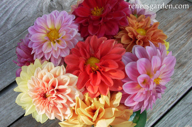 Amend soil with compost or aged manure before planting in full sun. Feed plants monthly. Remove faded flowers to prolong bloom. These dahlias will produce little underground tubers after their first season of bloom; select your favorite blossom colors when in bloom, then multiply those plants by digging up the tubers in late fall to replant the next spring.
