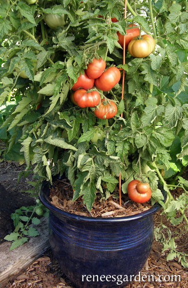 Tomatoes need at least 6 hours of full sun every day. Provide strong stakes or wire cages at planting time as plants get heavy with fruit. Mulch plants well to maintain even moisture. Pick fully ripe. Don’t store tomatoes in the fridge.