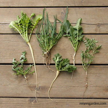 The Renee’s Garden Cover Crop Mix is a blend of several legumes, grass, roots, and rapeseed. The legumes, Austrian Winter Peas, Fava beans and Hairy Vetch all fix nitrogen from air into their root nodules, loosen and aerate dense soil and gather deep nutrients and minerals. Winter Rye Grass has thick roots which hold the soil to prevent erosion and takes up excess nutrients in the soil. Rapeseed takes up large amounts of nutrients that would otherwise be leached out of the soil by the winter rains. When these cover crop plants are incorporated back into the soil in the spring, they break down releasing the nutrients and minerals back into the soil and add plenty of organic matter which improves the soil structure.