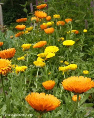 Calendulas bloom best in cool weather, so plant in early spring in well-drained soil after danger of frost is over. Sow seeds 1 in. apart, cover 1/2 in. deep, firm soil and keep seed bed moist while awaiting germination in 7 to 14 days. After seedlings are well established, thin or transplant 8 in. apart.