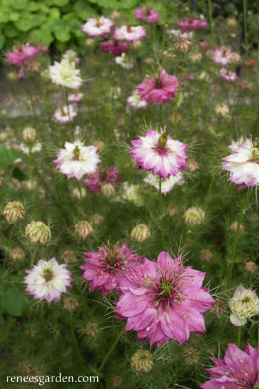 Make several successive sowings from early spring through early summer and these carefree old-fashioned flowers will bloom all season long. Their delicate blossoms make sweet little bouquets. As flowers fade, cut the decorative seedpods before they mature and split. Hang upside down in bundles out of the direct sun to dry for winter bouquets and arrangements. Let some seedpods mature on the plants to spill seed and these graceful flowers will come up year after year.