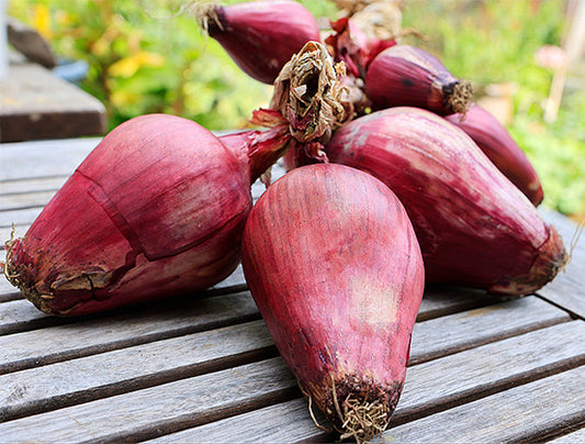 When they bulb up, they have an elongated torpedo shape and develop deep pungent flavor, delicious sautéed as a colorful base for any dish, roasted whole, barbecued on skewers or adding color and punch to sandwiches. These uniquely shaped, old-fashioned onions belong in everyone's kitchen garden. Stores well for about 3 months after harvest.