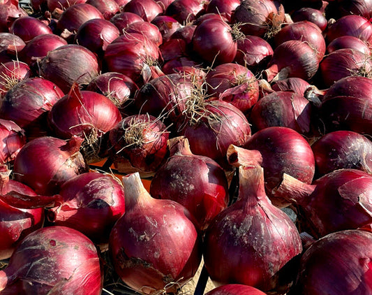 These big, 3-4 inch, globe-shaped hybrid onions have beautiful glossy skins and dark red to rich deep purple flesh that adds crunch and color to any dish. Cut them into lavish crispy red ring slices for wonderful sandwiches, in salads or with juicy hamburgers. They're also perfect for potato and pasta salads, in chili, hearty chili and in any kind of salsa.