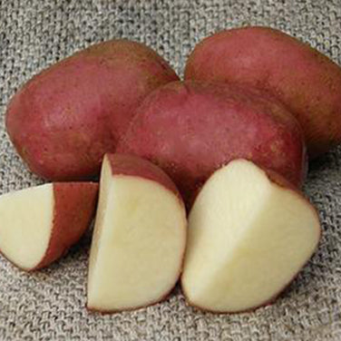 These large, rounded potatoes have deep red, almost burgundy colored skins and contrasting bright white flesh. A good choice when you want to dig some early for little red skinned baby potatoes, then leave the plants to produce full-size potatoes for later harvest.