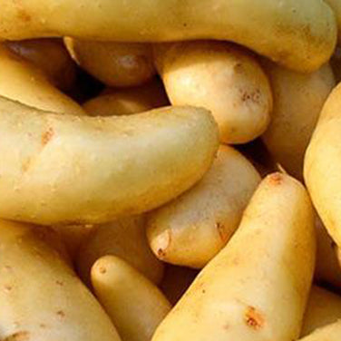 These oblong fingerling potatoes originally came from the Baltic region of Northeastern Europe. Tender Russian Banana potatoes have thin skins with firm, buttercream colored delicious flesh. They range in size from 3 to 4 inches long, with dense flesh that cooks up solid, keeps its shape well and slices neatly.