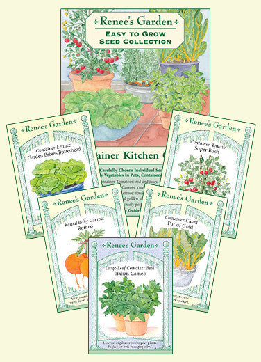 Our Collection includes five individual seed packets of varieties developed especially for growing in pots for a delicious and ornamental kitchen garden whose fresh healthy harvests will add savor and excitement to everyday meals. You will find our packet backs offer clear and complete growing instructions for each variety, ensuring success for anyone new to growing from seed, as well as harvest tips and cooking ideas. Also included is our “how-to” guide for container gardening covering the basic gardening information needed for rewarding and bountiful harvests.