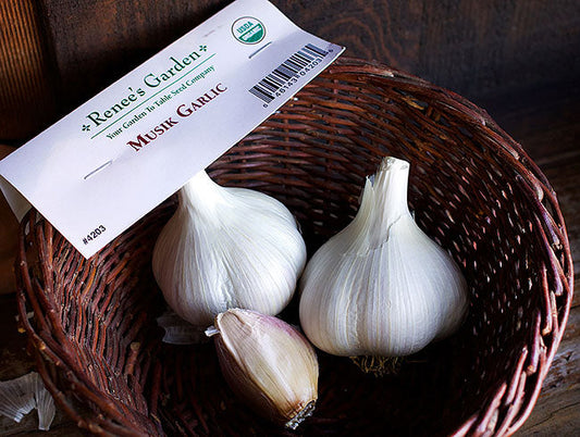 The very large cloves are tightly encased in wrapper leaves but peel out easily. Uniformly high-yielding and vigorous, cold-tolerant Musik is one of the very earliest varieties to mature. Early to mid-season maturity.