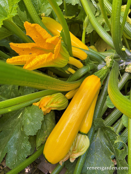 Harvest these luscious, rich green zucchini when no more than 5 to 6 inches long for top flavor and texture. Frequent harvesting keeps plants producing tasty new fruits.