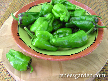 For traditional Tapas, harvest the abundant little pointed fruits at no more than 2 inches long. At this small size, they are fragrant and flavorful; larger fruits get very spicy. To serve: Sauté the Tapas peppers quickly in a little hot olive oil just until the skins are glossy and slightly charred. To finish, sprinkle with coarse salt and enjoy while still hot. Most Padrons are mild, but occasionally one little pepper will have more spice — this is traditional and even sought after in Spain.Regular price $3.69Sale price $3.69Unit price / per -