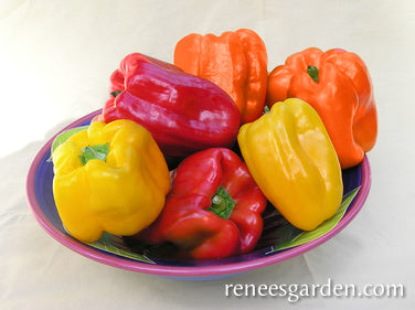 Ready to pick in late summer, pepper fruits start out green and ripen up to rich red, orange or golden yellow, depending upon variety. Edible at any stage, glossy, fully colored fruits have the best flavor and are high in vitamins A and C. Carefully cut rather than pull peppers from plants. Enjoy these pretty peppers sliced up raw, sautéed, stir fried or grilled.Regular price $4.99Sale price $4.99Unit price / per -