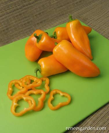Pick the 3 to 4 inch peppers when fully colored up orange. Cut rather than pull them from plants. Enjoy them sliced up raw, sautéed, stir fried, grilled or piled on pizza.Regular price $3.69Sale price $3.69Unit price / per -