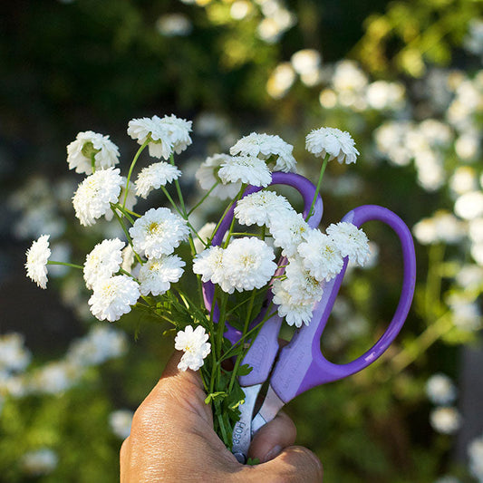 A garden essential! We never go into the garden without these all-purpose little scissors. They are the perfect size to cleanly and quickly trim dead leaves, cut flower stems, harvest greens, vegetables, or cut sprigs of fresh herbs and blossoms. We also keep a pair in the kitchen for everyday cooking tasks like snipping herbs and scallions and cutting thin bones.