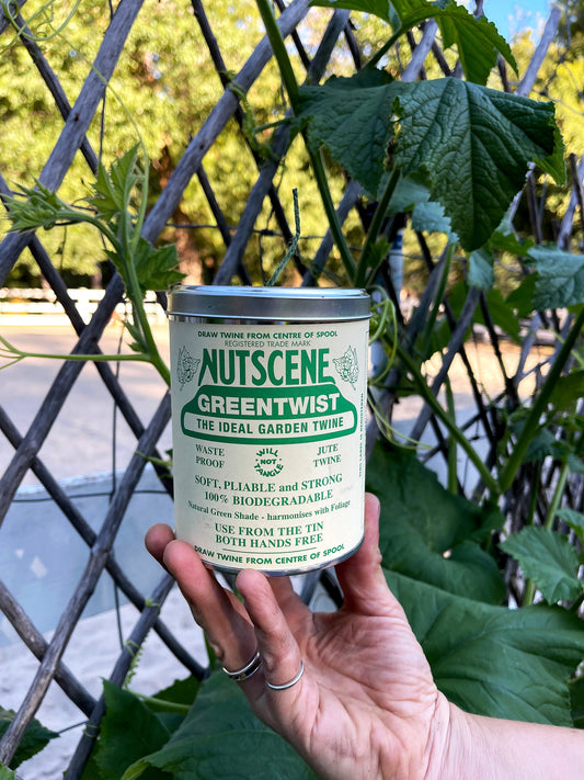The vintage style tin keeps your twine dry and tangle free and lets the twine spool out easily. The Nutscene brand of jute twine has been sourced, manufactured and wound in Great Britain since 1922! This workhorse product will serve you all season long.