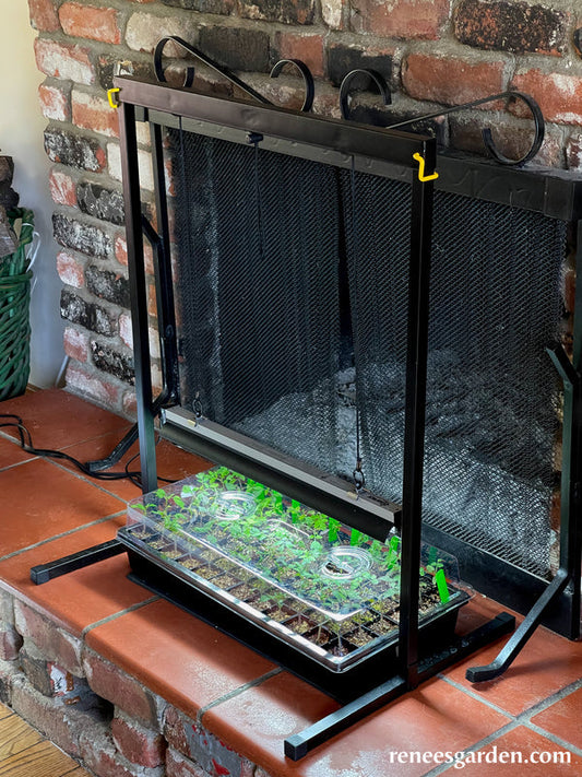 When you start seeds indoors, this sturdy and practical grow light unit is the best investment you can make to meet your seedlings’ critical requirements for long hours of intense light. You can keep this adjustable florescent light very close to the surface when seedlings are just germinating to provide both light and heat, and then easily move it up as they grow taller and fuller. Seedlings really thrive with this constant light bath and will mature into the stocky, healthy, deep-green transplants that succeed best in the garden.