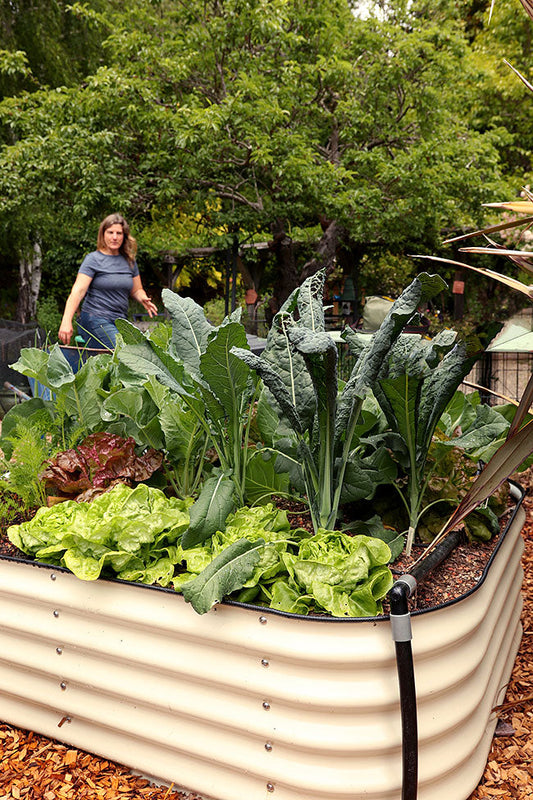 Rated for a 20-year lifespan, these metal beds have superior longevity to wood and are perfect for long-term organic gardening use. The coated metal sides reflect rather than absorb heat. And their 17-inch above ground depth means less low bending for you when tending, weeding or harvesting. The extra room also allows for better drainage and optimal room so your plants will develop deep root systems.