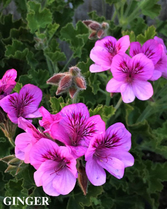 Three separate 3 1/2 inch pots with well-rooted, established starts for Ginger, Cinnamon and Nutmeg scented geraniums, ready to plant. All orders include our carefully written, comprehensive Planting and Growing Guide for success when planted in the garden, in pots/window boxes, or indoors as houseplants.