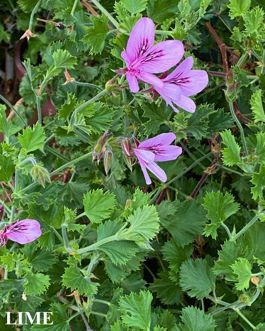 Three separate 3 1/2 inch pots with well-rooted, established starts for Orange Fizz, Rober’s Lemon Rose and Lime scented geraniums, ready to plant. All orders include our carefully written, comprehensive Planting and Growing Guide for success when planted in the garden, in pots/window boxes, or indoors as houseplants.