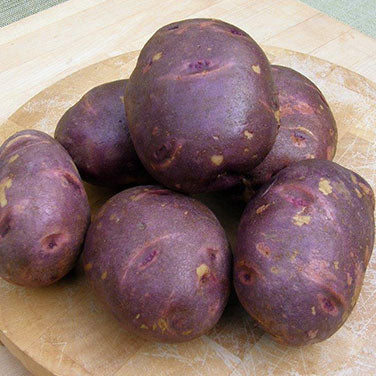 These are truly beautiful potatoes: large, round in shape, with a rich, dark purple skin lightly dappled with pink splashes and stripes. Inside, the fine-textured, firm flesh is creamy white, smooth, and truly delicious. Heirloom Viking was first introduced almost 60 years ago by the potato improvement program at North Dakota State University.