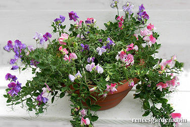 Sweet peas bloom best before the weather gets too hot. When seedlings have 3 to 4 sets of leaves, pinch off top set to encourage branching for a bushy full plant. Young plants will grow 8 to 10 inches tall, then cascade over the sides of containers. It’s critical to keep your container sweet peas well-watered and remember to fertilize them regularly every two weeks with liquid fertilizer solution. Protect plants from slugs and snails. For longest bloom, remove faded blossoms regularly.Regular price $3.69Sale price $3.69Unit price / per -