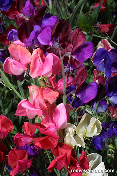 Sweet peas bloom best before the weather gets too hot, so if spring planting, sow as soon as ground can be worked. Where summer heat comes on fast, they’ll appreciate a spot with afternoon shade. Anchor supports well as vines will grow heavy with bloom. Protect seedlings from birds, slugs and snails. Mulch and keep well watered. For longest bloom, pick flowers often and keep faded blossoms cut.