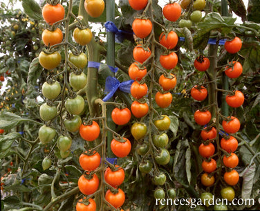 Plants will grow tall and heavy with fruit clusters, so provide sturdy supports. For best flavor, pick only when fully ripened to rich red with gold-bronze streaks. Don’t refrigerate; these pretty fruits keep well in a countertop basket. Enjoy fresh, or try a quick sauté with garlic in good olive oil just until they burst, then sprinkle with fresh herbs.