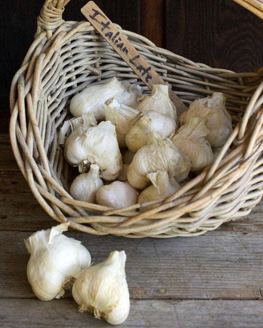 This late maturing variety will nicely extend your garlic harvest and is well worth waiting for. The rounded, medium size bulbs have cream colored, tight wrapper skins that keep the fat garlic cloves inside them fresh. Italian Late has a balanced flavor with medium heat and spiciness.