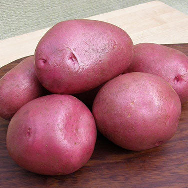 This excellent new red-skinned potato variety offers high quality, crisp white flesh and smooth skin magenta-red skin, but its beauty goes a lot further than pretty color. You can rely on this great tasting all-purpose potato every season for uniform heavy yields of rosy colored, medium oval shaped tubers that can be used in so many ways, including roasting, mashing, frying, microwaved, or simply steamed for very pretty summer potato salads.