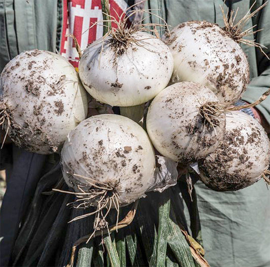 An outstanding and improved strain of Sweet Spanish onion, Ringmaster has white flesh and milky white skins. It produces very large globe-shaped onions with really crisp, mild, sweet flesh. These long day onions are heavy producers and excellent storage onions that keep for 4-5 months. Ringmaster is resistant to pink root disease.