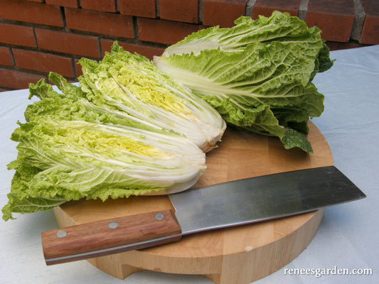 Baby Napa cabbage needs full sun and rich, well-drained soil to produce firm, sweet heads. To avoid stunting growth, don’t let seedlings get crowded before thinning or transplanting. Keep weeded and evenly watered. Feed monthly with fish emulsion or an all-purpose fertilizer; strongly growing, healthy plants resist pests much more successfully. Use non-toxic B.T. (Bacillus thuringiensis) for caterpillar pests. Floating row covers provide a good barrier method to exclude pests. Remove covers when heads begin to form.