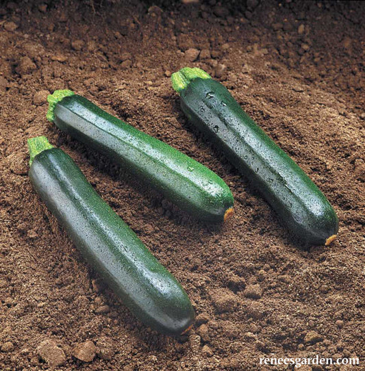 Zucchinis need full sun, rich fertile soil and warm temperatures. Plant only when spring weather is warm and night temperatures stay above 50°F (10°C). Sow groups of 2 to 3 seeds,1 inch deep, every 2 feet, in rows 3 feet apart. Thin to leave only 1 seedling every 2 feet. Or, plant in slightly mounded hills, 2 feet in diameter, sowing 5 or 6 seeds in each hill. Thin hill-planted seedlings to 2 or 3 strongest plants.