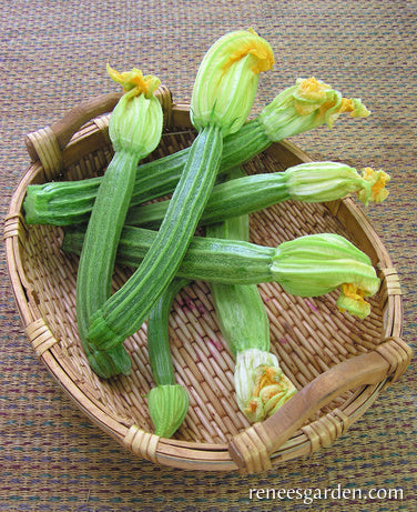 Harvest zucchini when no more than 5 to 6 inches long for best flavor. Frequent harvesting keeps plants producing tasty new fruits instead of maturing fat, tough, huge ones. Steam, stir-fry or grill sliced zucchinis and sprinkle with fresh parsley, dill, basil or thyme. Try the tasty blossoms sautéed or stuffed and baked. Heap a platter with spears of baby zucchinis to serve with your favorite dip for appetizers or snacks.Regular price $4.89Sale price $4.89Unit price / per -