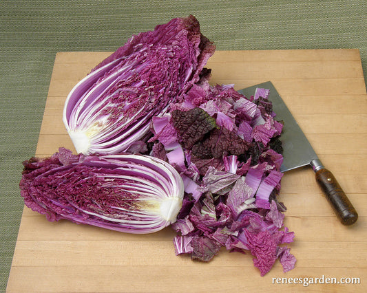 Harvest these plump minis when heads are solid and well filled out. Cut in half and sauté briefly, until just tender, then finish with a little soy sauce and toasted sesame oil. Or enjoy their mild sweet crunch in any stirfry, but don’t overcook. Mini Pak Choi is succulent, crunchy- sweet and mild tasting, and chock full of vitamins.