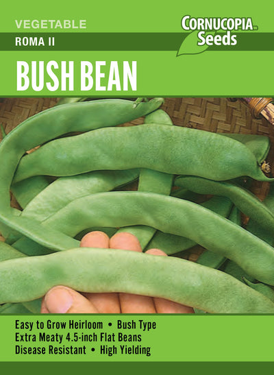 Roma II is a classic Romano-type Italian bush bean. Pods are broad and flat, and grayish-green in color. Home gardeners will have big yields of fresh beans ready to enjoy early in the season. The crisp and tasty stringless pods produce heavily on sturdy plants and the short vines required no staking.