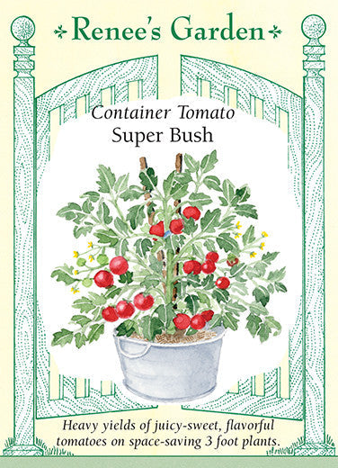 EXCLUSIVE - These scrumptious hybrid tomatoes are specially bred for abundant yields on space saving 2 1/2 to 3 foot plants. They are perfect for growing in large pots and patio containers. Super Bush bears juicy fruits with full-sized sweet tomatoey flavor, not bland or watery like so many other bush varieties. It’s a treat to walk out the back door and pick them still warm from the sun. A perfect way to enjoy the incomparable flavor of vine-ripe tomatoes even when you have limited garden space.Resistant to Verticilium 1, Fusarium 1, Nematodes