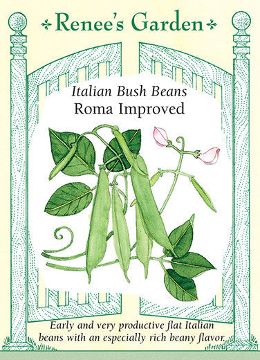 This early-bearing, bush Roma variety is an old Italian favorite, reselected for great taste and improved yields. The vigorous 2 foot plants bear heavy harvests of flat, wide, 5 inch long green stringless pods with a distinctively rich “beany” flavor. They are scrumptious just steamed with a little butter or use them in your own freshly made minestrone soup, marinated for antipasto or in any green bean recipe. You’ll find their full meaty flavor is special and satisfying.