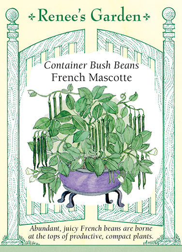 Mascotte is the first true container green bean variety, perfect for patio pots and small space gardens. Developed by expert French breeders, these fast-growing compact, sturdy plants are extremely disease-resistant and produce heavy yields. You’ll enjoy their pretty cream colored blossoms, followed by super abundant, slender, crispy, delicious green beans. Beans are borne at the tops of the plants, so they are both ornamental and easy to harvest over a long period for garden to table eating.